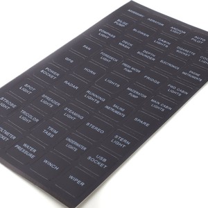 Racing Switch Panel Tags - Race Ready Products Racing Switch Panel Tags View Larger Image Switch Panel Tags are useful for identifying all of your electrical switches. Sold in 2 sizes, Large-1 1/4"W x 3/4"T, and Small-3/4"W x 1/2"T. Choose from Black, Blue, Red, or White. Each kit comes with 24 tags. Simply peel and stick to your race car dash. Custom labels available-call for quote